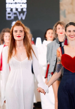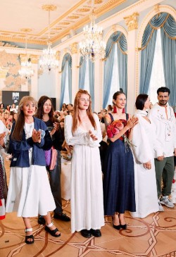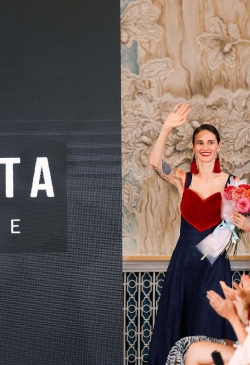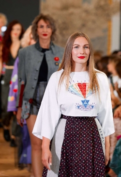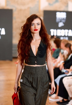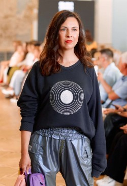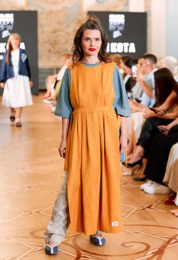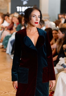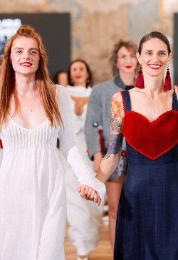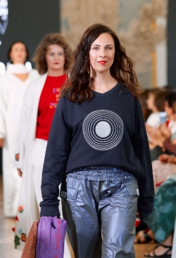 The collection is replete with bright accents and bold decisions. Every piece was created with reverence, tenderness, and hand-decorated. Lace,velvet, leather, and cotton interact and feed the items with their energy.