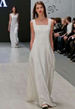 INDIA suggests a fresh view of wedding and evening fashion. 2015’s collection expands the frames of classic wedding design, demonstrating minimalism, geometry, simple lines and silhouettes. Average customers of the brand are stylish, modern girls and women with wide outlook, those, who appreciate comfort and intelligence as well as beauty. Neat and fashionable looks from INDIA’s debut collection deliver the guests of the show a new vision of a wedding dress conception.