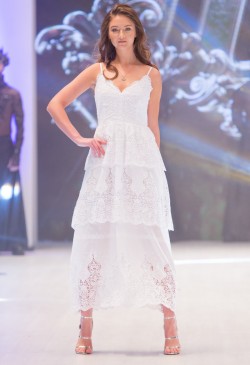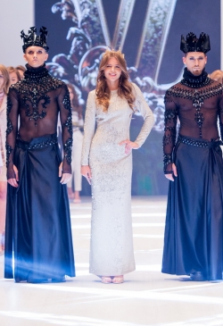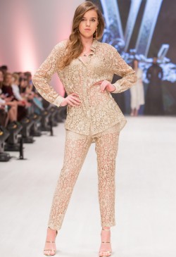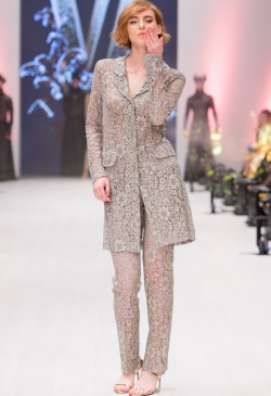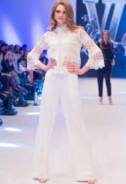 This collection is made for women who identify themselves with luxury and individual style. Garments for any occasion are represented in the collection. With respect to the bohemian theme, primary materials are French veil, grand lace and atlas. Spring-summer ’18 collection is a status person’s wardrobe – the timeless duet of black-and-white, fishnet trousers, lace bodices and light blouses, tops and shorts. Capsule lace dresses of blue steel colour are worth considering into detail. Gold embellishment, spectacular lace trimming and silver sparkles are the general elements of the spring-summer line. Contradiction and mixture of classics and modern trends are the general idea of the collection.