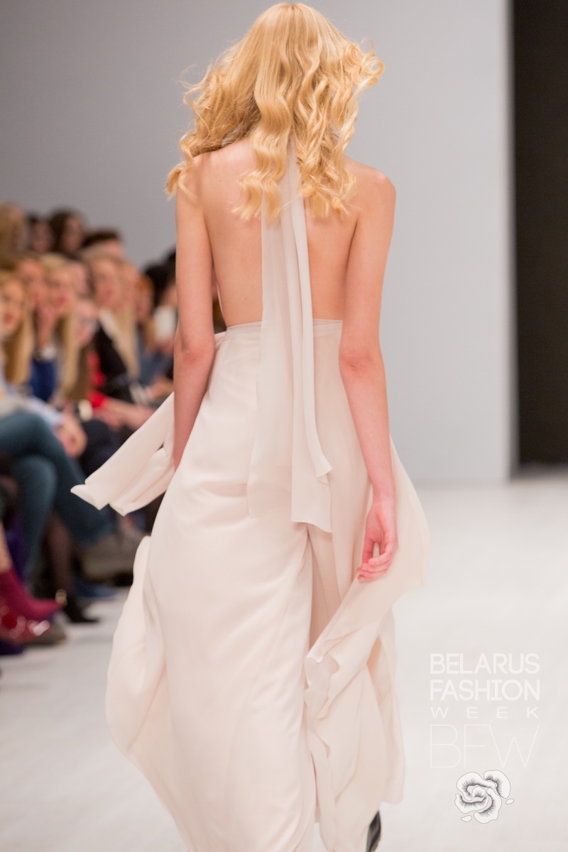 Elements of antique style (early Medieval ages): streaming materials, fine drape and multi-layering combine harmoniously with Gothic elements (late Medieval ages).