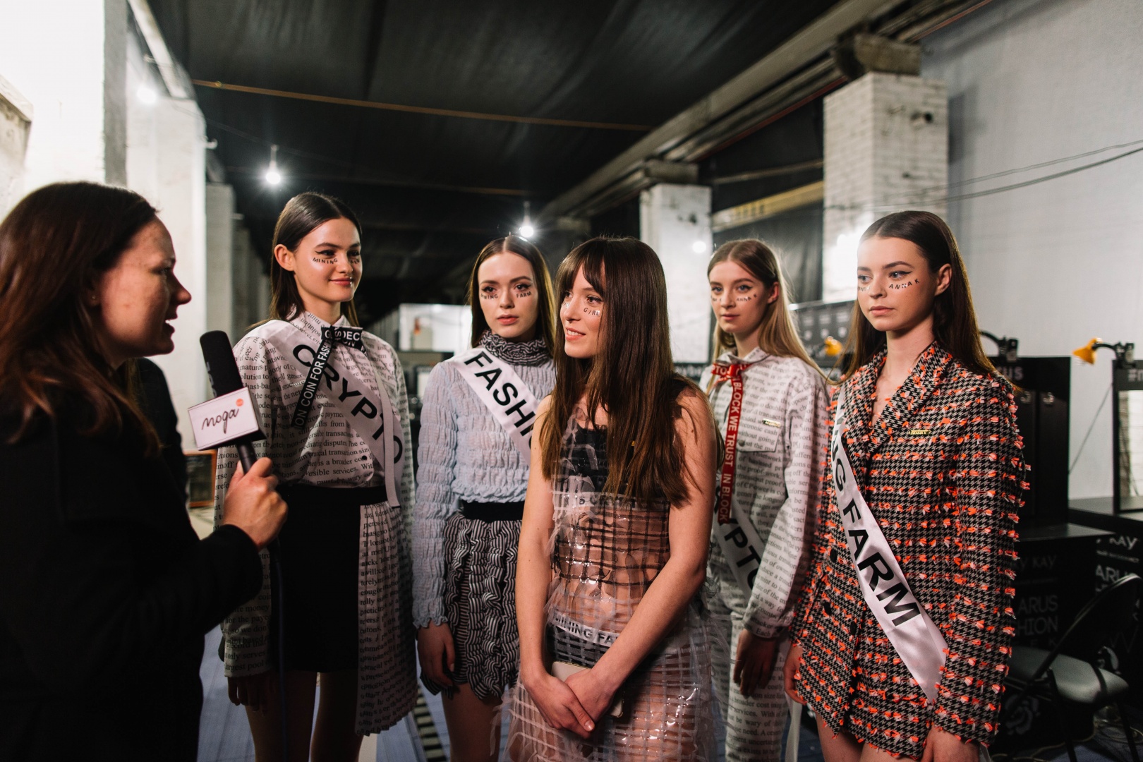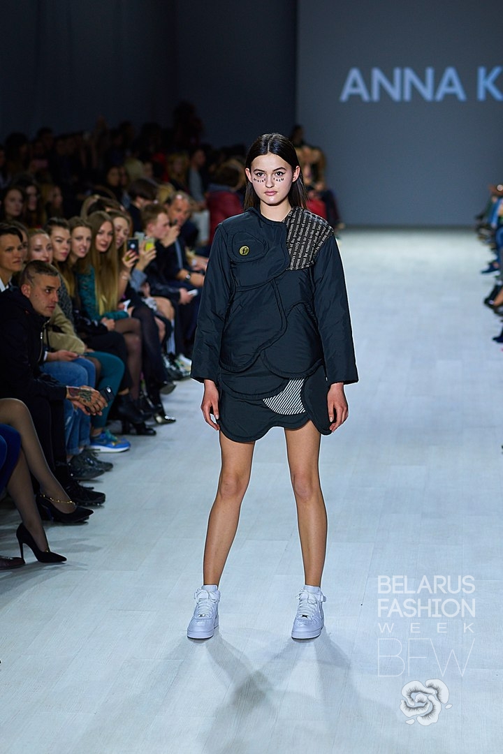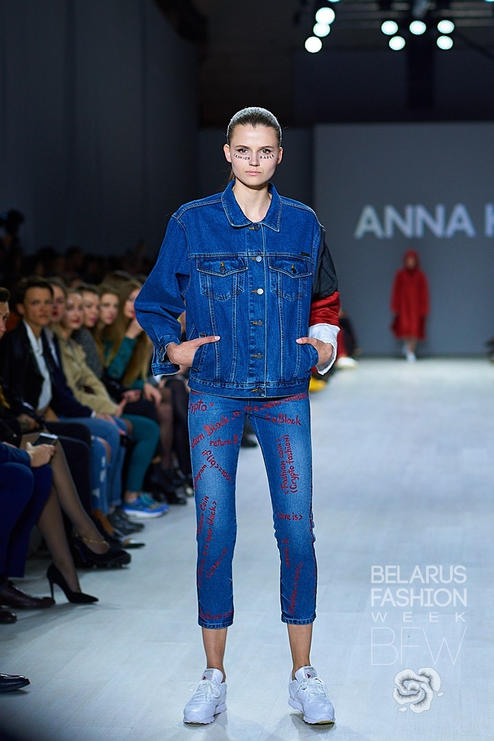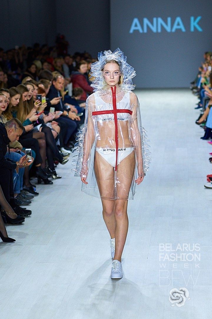The young Ukrainian designer Anna K - brand name emerged from Anna's model past (models' names are written and capitalized by the surname), who is Anna Karenina, presented the collection "Fashion Coin". Anna's bright and provocative clothing is sold in stores around the world. It is distinguished by a large number of transparent elements, costumes, with a text on them and unusual solutions in styling - an option for courageous and daring. The main purpose of the collection is to draw attention to Fashion Coin Ecosystem. Besides models, the designer was on the podium as well. The plans for the brand are to open a store in Minsk. All the photos from the podium here.