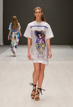 Новая коллекция GRINKO сезона Spring-Summer 2015 называется «Synthetic Riot» («Синтетическийбунт»). Тема коллекции – нарушение равновесия в природе. Данная тема весьма актуальна, особенно если принять во внимание события, которые происходят в Восточной Европе и на Ближнем Востоке. Мы являемся свидетелями потрясений и гражданских войн, искусственно организованных в экономических и политических целях.