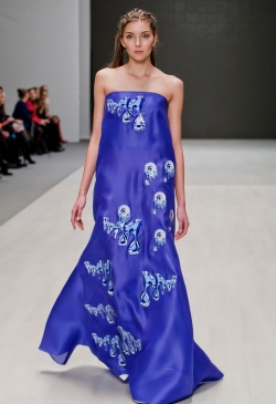 Дизайнер старается представить своё настроение через знаковые образы шведской куклы, руки которой изувечены такой же куклой, как и она сама. У дизайнера остаётся надежда, что человек "откроет глаза " и вернётся к равновесию, основанному на законах природы. GRINKO предлагает новую абстракцию, вдохновлённую картинами Кандинского и Матиса, вспоминает природу в полном объеме, использует эксклюзивные принты на шелке и парче, разрабатывает цвета с редкими оттенками в сочетании с вставками из кожи питона.