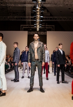 Самый модный в этом сезоне, животный принт имеют уникальные структуры и цвета, вельвет и бархат на этот раз пунктир, а джинсы имеют новую, металлизированную форму. Основой коллекции являются классические куртки мужских must-haves - куртки для байкеров и бомбардировщиков, брюки из тонкой подгонки, но в улучшенном виде.