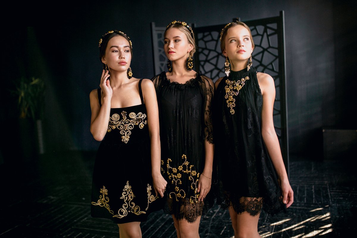 Коллекция “Золотое руно” представлена роскошным бархатом, тонким кружевом, нежнейшим шелком, прозрачными тканями, затейливой вышивкой, жемчугом и камнями! Все это способно приковать взгляд к обладательнице наряда, который подойдёт как для маленькой принцессы, так и для роскошной леди!