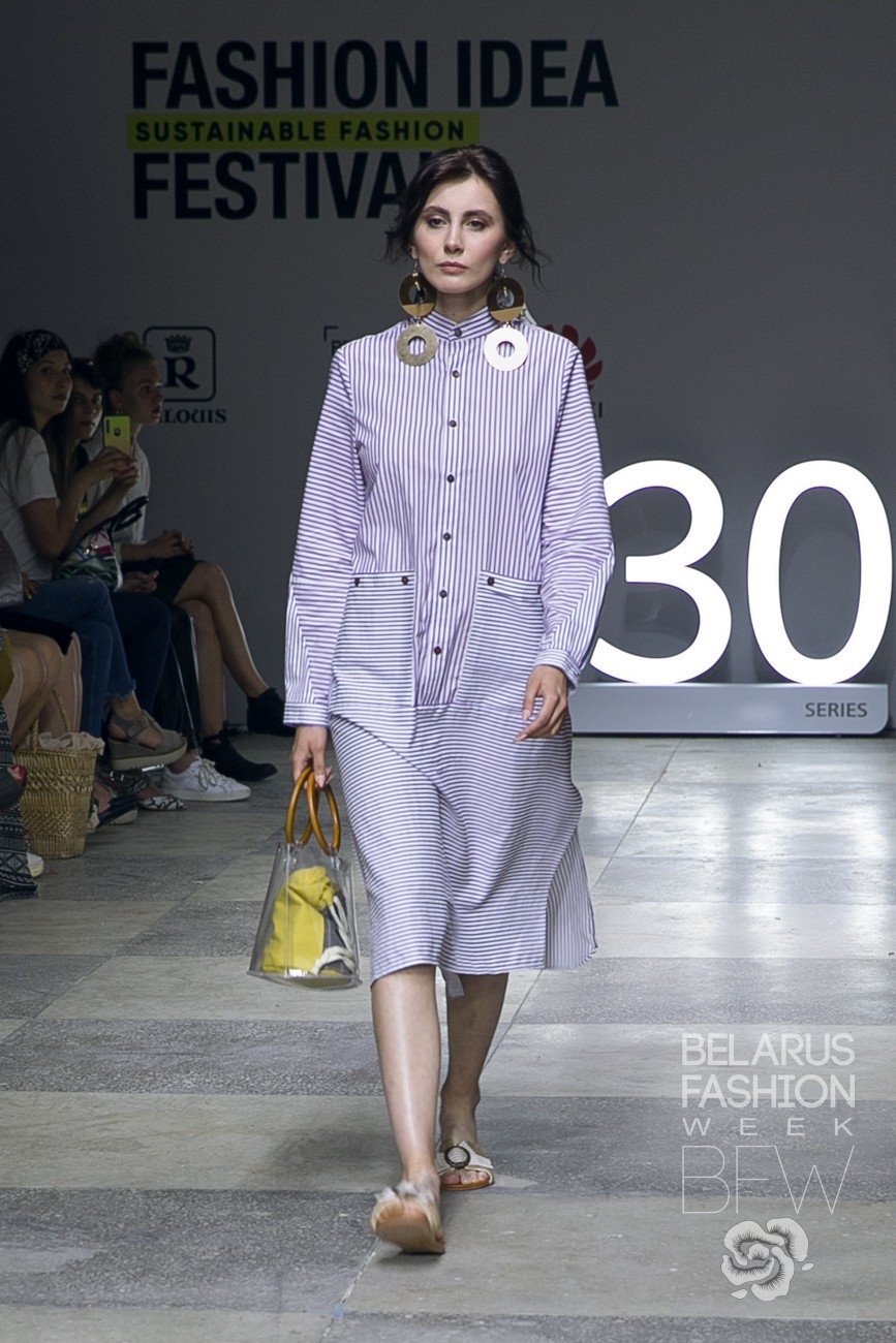 Коллекция основана на идее редизайна, а именно использование хлопковых б/у мужских рубашек как основного материала. Одежду частично порола, сохраяя основные черты классической мужской рубашки: планка на петли и пуговицы, нагрудный карман, воротник, манжеты. В среднем на один лук ушло 2-3 рубашки. В основном это платья и юбки А-силуэта. Благодаря гармоничному сочетанию цвета и рисунка в каждом из образов достигнута лаконичность и целостность. Коллекция дополнена аксессуарами: плетёным сумками из бумажножной лазы, серьгами, обувью, которая так же подверглась редизайну.