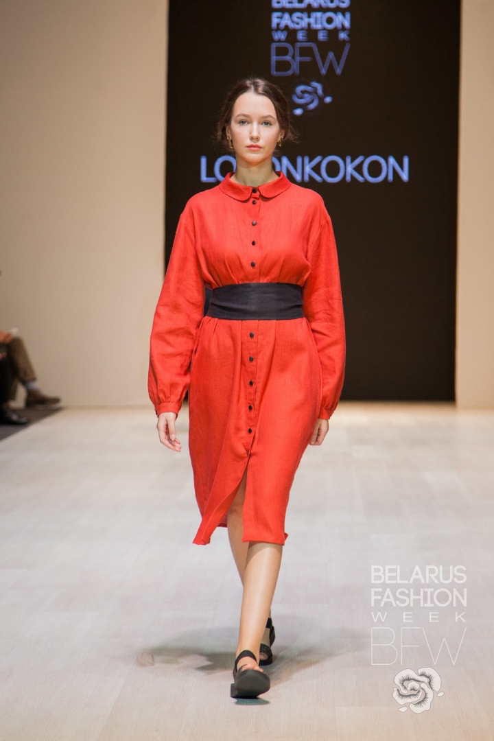 Бренд Lokonkokon с дуохромной коллекцией "Flatlands" не стал акцентировать внимание на белорусском колорите, а сделал ставку на лаконичность кроя и натуральное происхождение ткани и фурнитуры – льняные платья украшали деревянные пуговицы, а в качестве головных уборов использовались шляпы канотье.