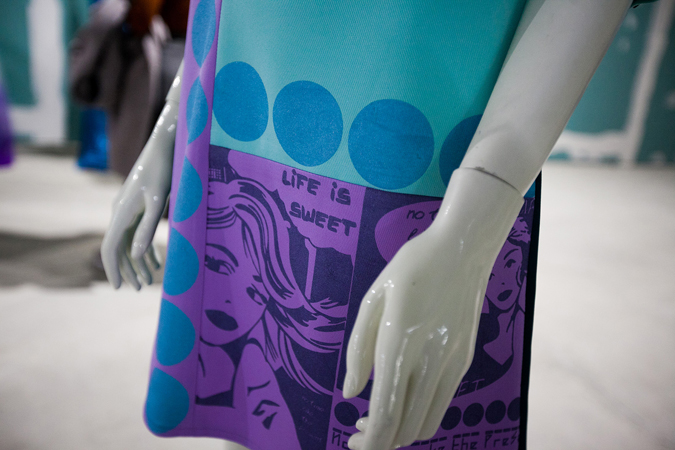 Девиз «Лови, момент – жизнь прекрасна!» нашел отражение в динамичных и дерзких формах нарядов, а также стал отсылкой к стремлению молодых людей быть мобильными и фиксировать самые яркие эмоции и события. Марина часто использует различные послания в своей одежде, поэтому надписи «Life is sweet» и «No time like the present» это не только стильный акцент, но и адресное обращение.