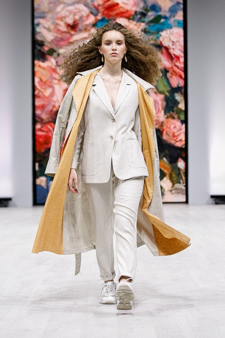 Всё больше хлопка, льна и вискозы использует и дизайнер Лариса Балунова. Её новая коллекция на 30 процентов состоит из натуральных тканей. Вещи не только внесут в гардероб оптимистичный посыл, но и смогут служить вне чётких трендов и сезонов. Льняные платья с акцентами на плечи, жакеты-трансформеры, oversize-жакеты из благородного фактурного льна в симбиозе с яркими боди, сочетания брюк-скинни с разрезами и легинсов в одном образе – чем не новый взгляд на классику?
