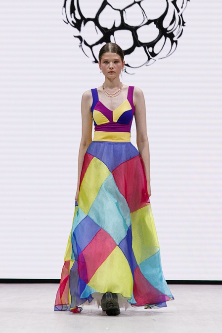 Коллекция «Калейдоскоп» создана в коллаборации с белорусским художником Александром Некрашевичем. Репрезентативные вещи украшены оригинальными авторскими принтами. Ярко и позитивно! В показе приняли участие многие титулованные модели. Среди них, например, «Мисс Беларусь-2021» Дарья Гончаревич.