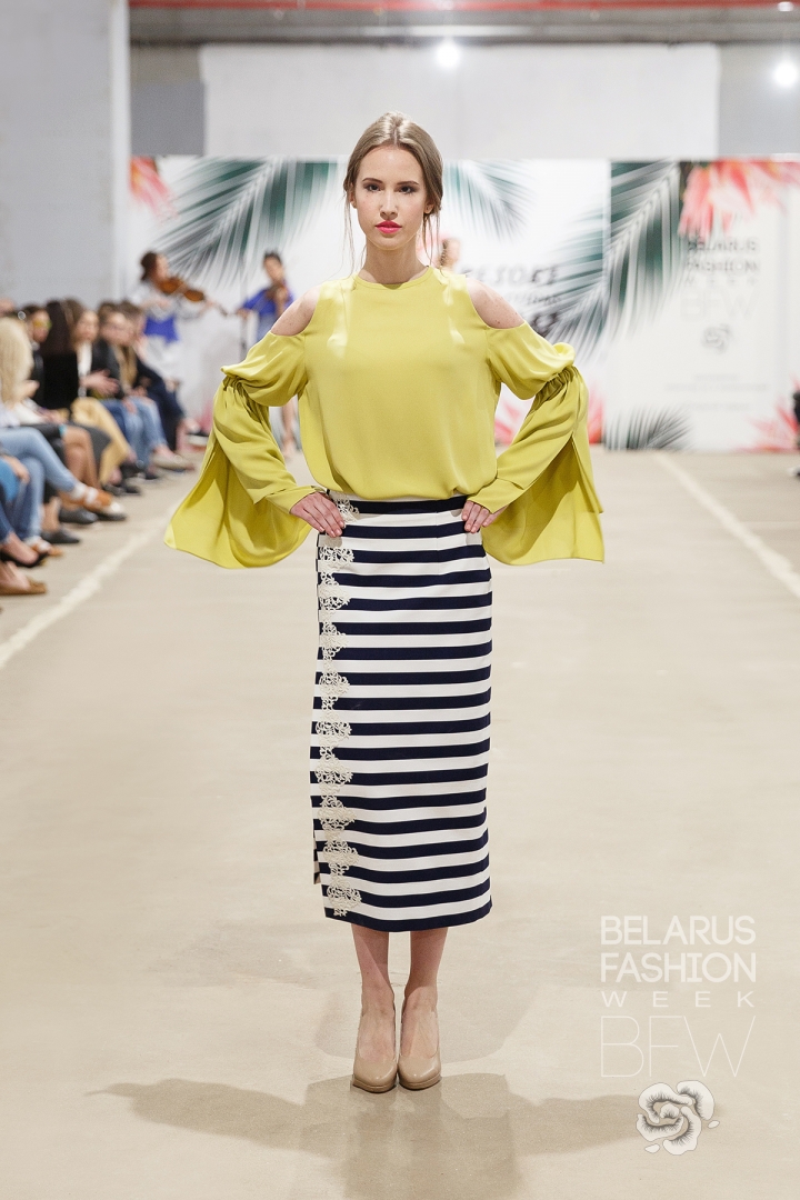 Бренд She’fon создает вещи ручной работы и исключительно из итальянских тканей. Источниками вдохновения для коллекции, представленной на Resort Collections Belarus Fashion Week, является искусство, архитектура, классическая музыка и путешествия. Как продолжение женственной тематики в коллекциях сделан акцент на платья, также в ассортименте юбки, комбинезоны, жилеты. Платья – лейтмотив и ведущий хит бренда She’fon. Стоит отметить, что каждое изделие лимитировано и выходит в эксклюзивном варианте.