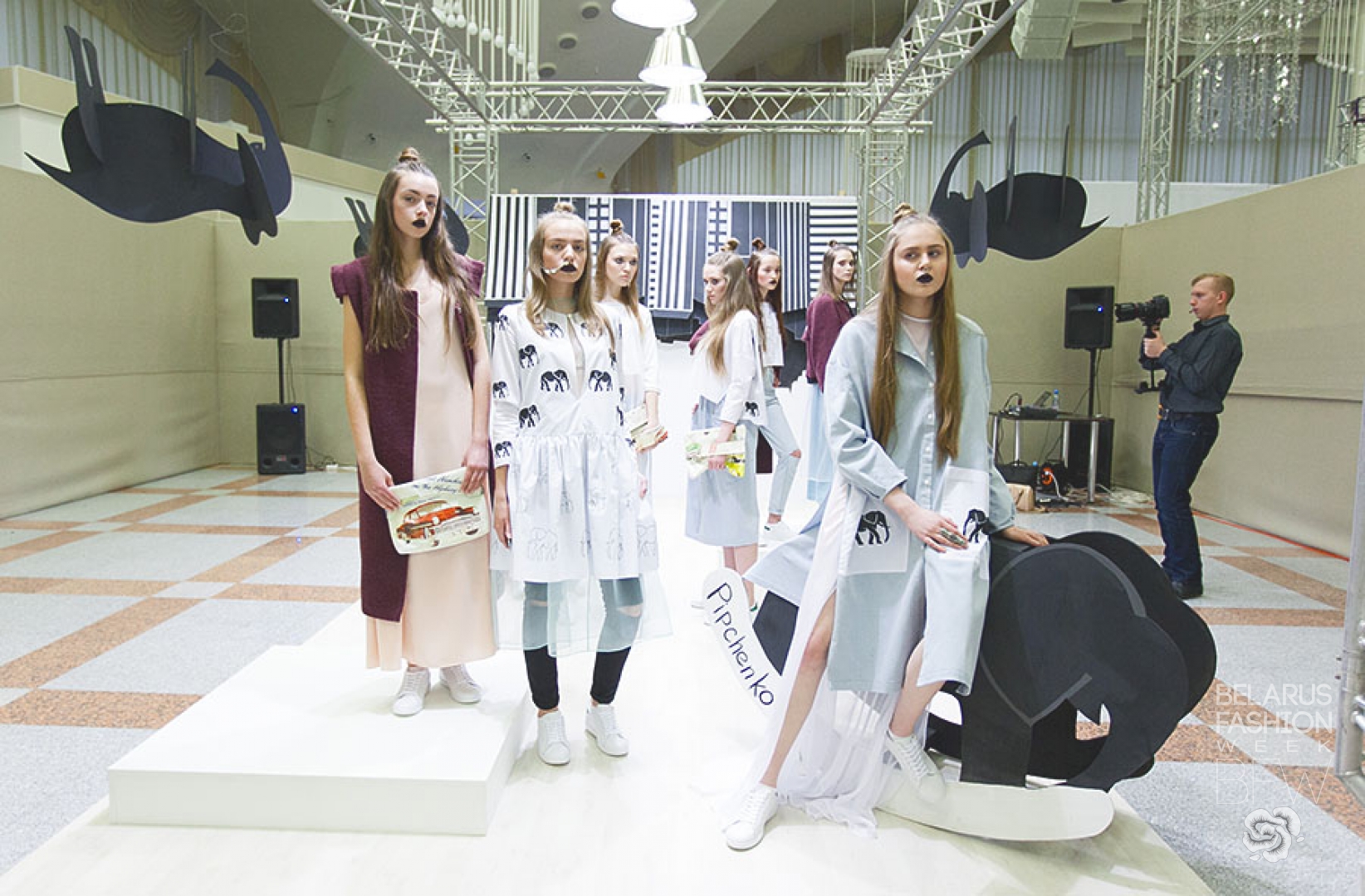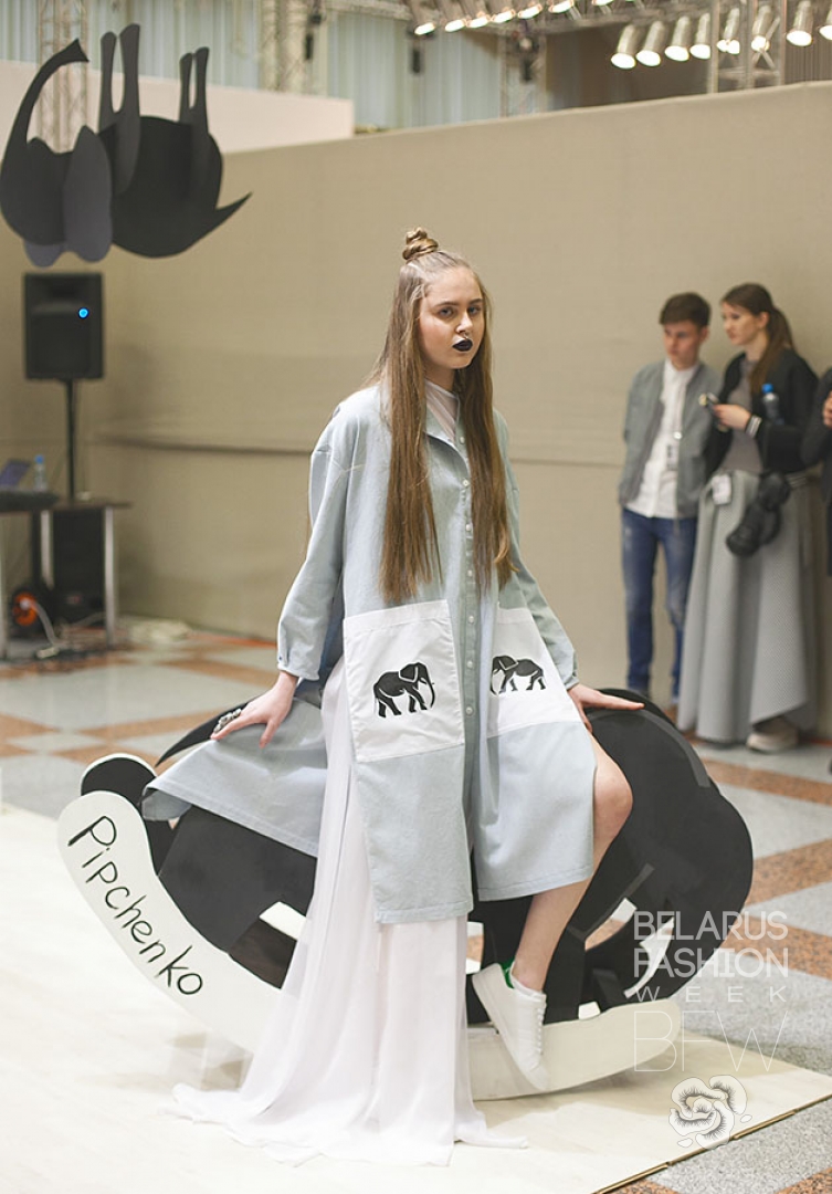 Основными характеристиками бренда Pipchenko и его дизайнера Татьяны Кушнеровой являются эклектика, лаконичность и минимализм. Представленная коллекция носит название «Water for elephants» и главным ее акцентом является принт слонов ручной работы от художницы Юлии Лу.